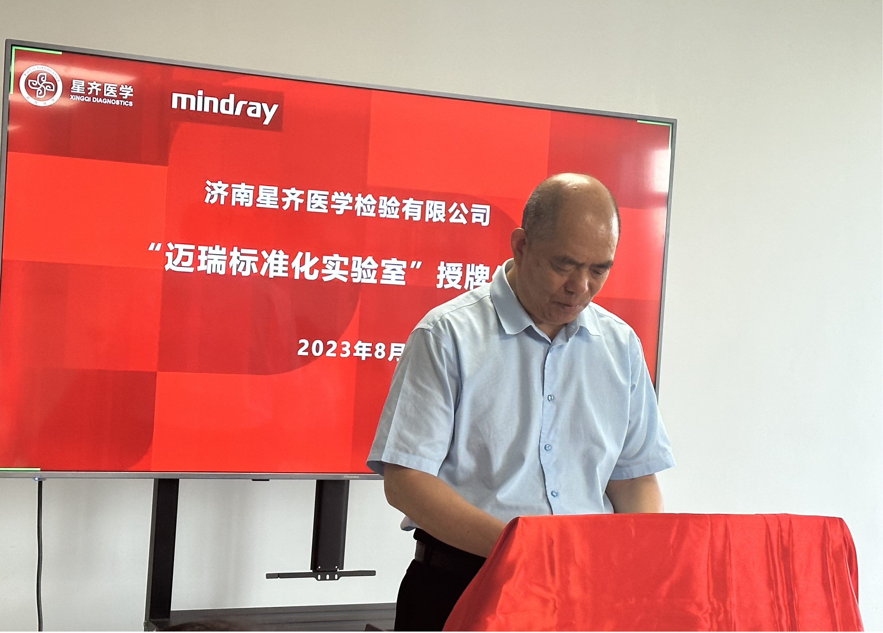 仪式上,星齐医学总经理董刚介绍了公司概况及实验室建设发展历程,他表示星齐医学高度重视与国产医疗龙头企业迈瑞的合作,济南星齐围绕规范化实验室建设项目,在设备服务能力建设方面牢固基础和特色优势进行改造。旨在通过提升实验室诊断能力,为患者提供更优质更高效更精准的医疗服务。
